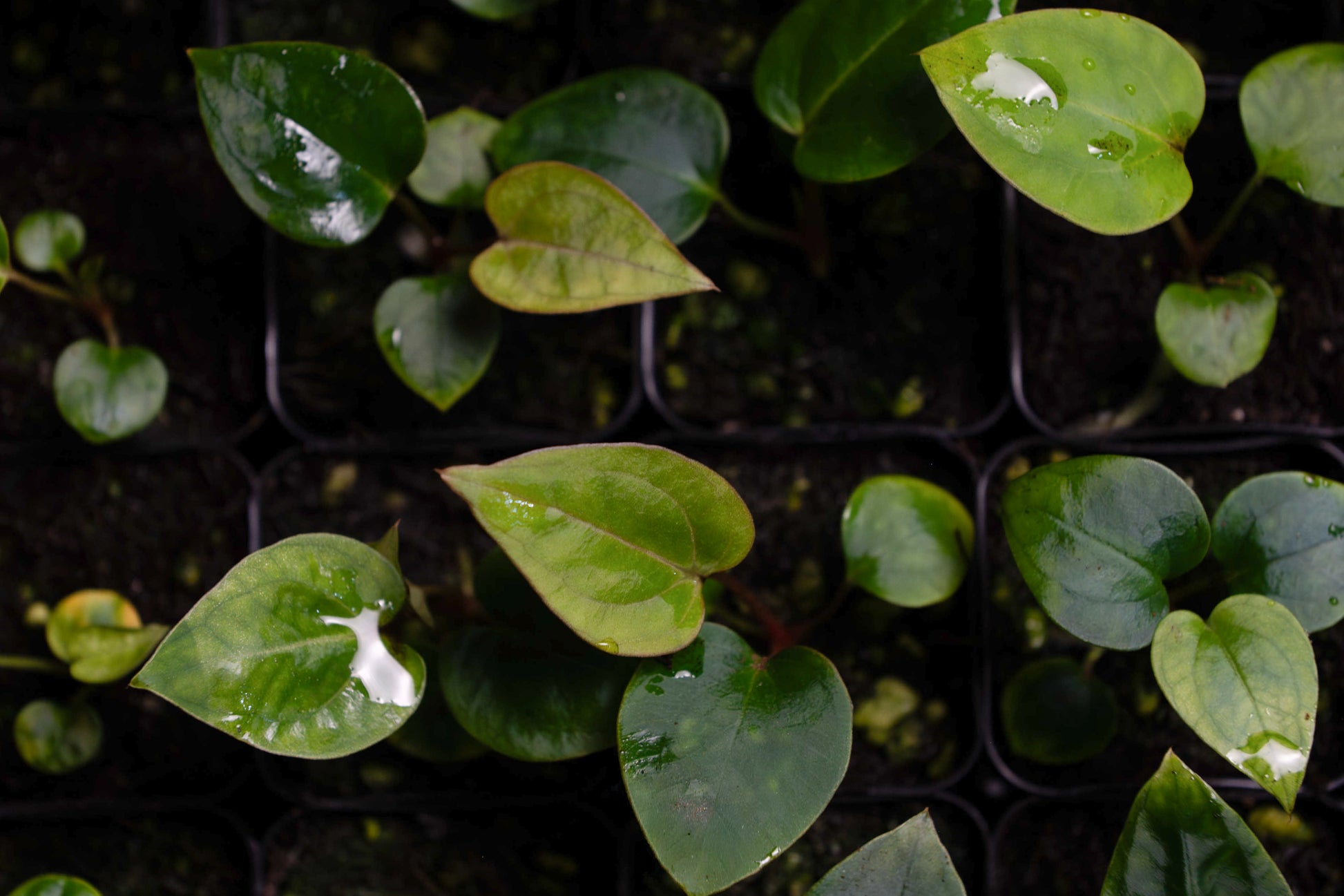 This pairing brings together the dark and stripey seed parent Enid's Bench x Bess aff "Narrow" and the hallmark triangular shape and red-copper emergent tones from pollen donor Dorito Portillae. The offspring have been presenting with stunning pink veins and we expect to see deep contrast and unique proportions with this cross as it matures.